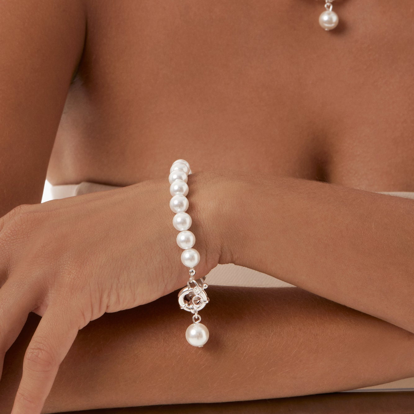 This Single Row Pearl Bracelet features lustrous pearls arranged in a timeless design, adding understated elegance to any look.