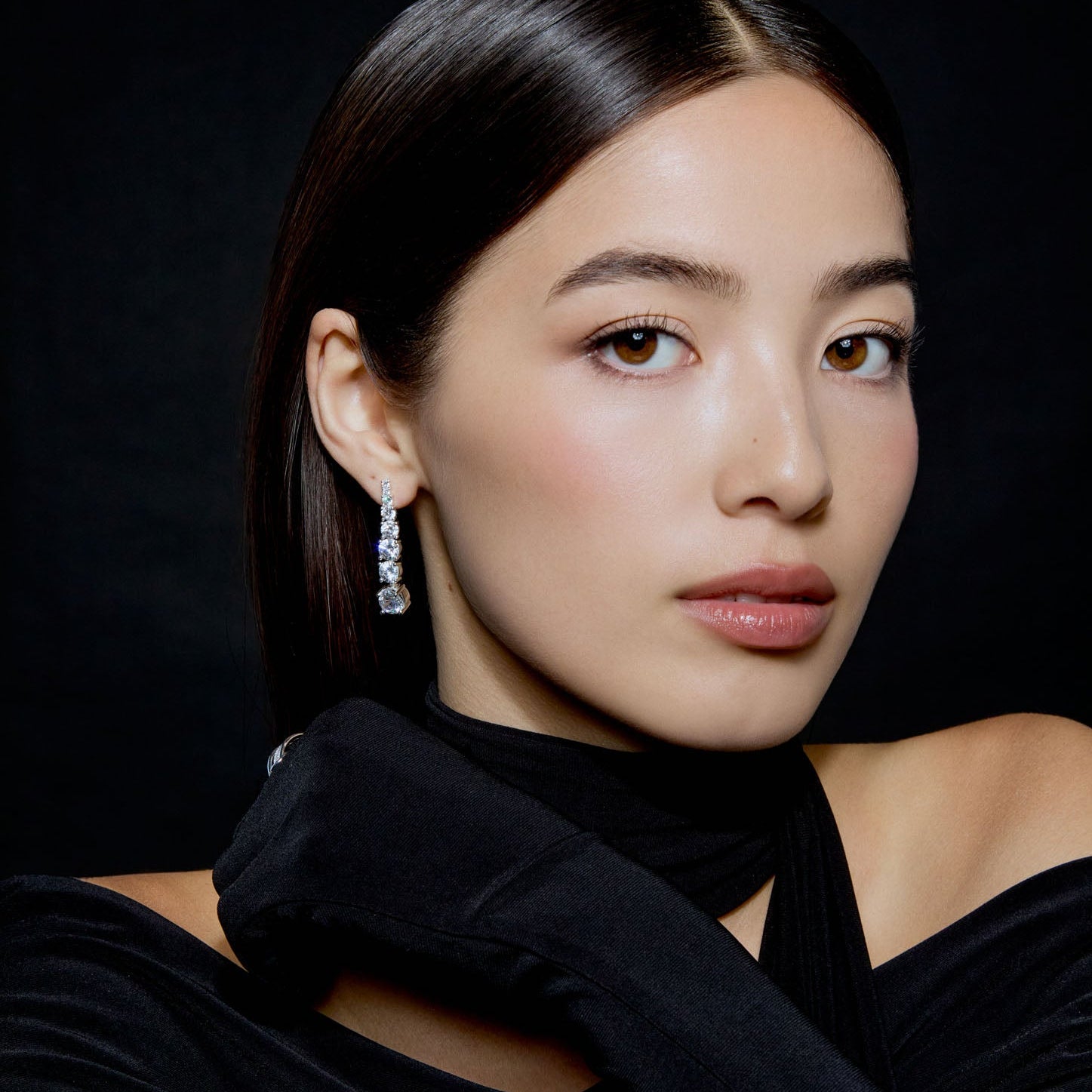 From delicate chains, luminous round-cut stones descend in graceful arcs, capturing light with refined precision. These Round-Cut Drop Earrings embody understated luxury—a perfect complement to both minimalist and layered jewelry aesthetics.
