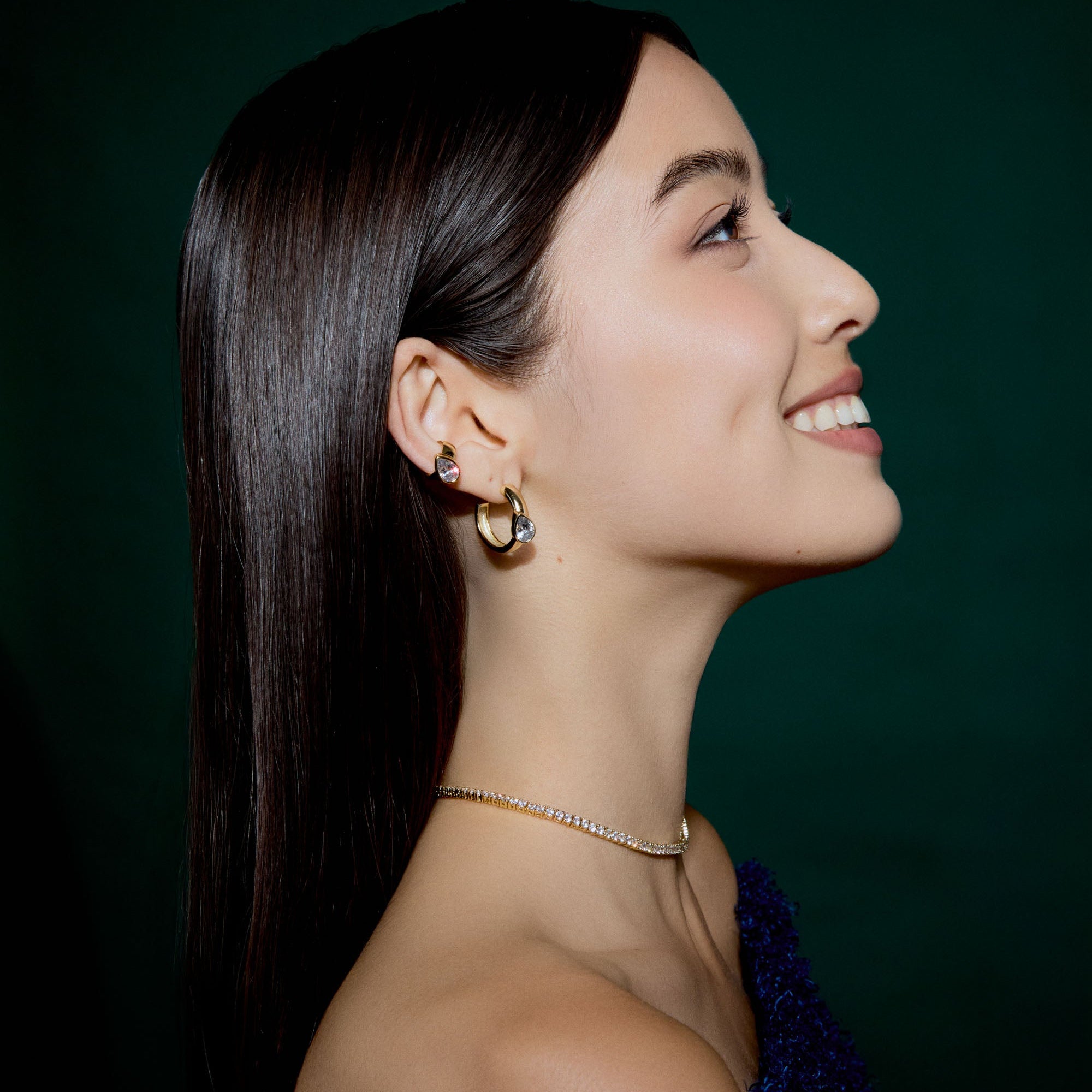 Stainless steel post chosen for strength and hypoallergenic properties with an extra clip closure made in brass for optimal support and comfort.