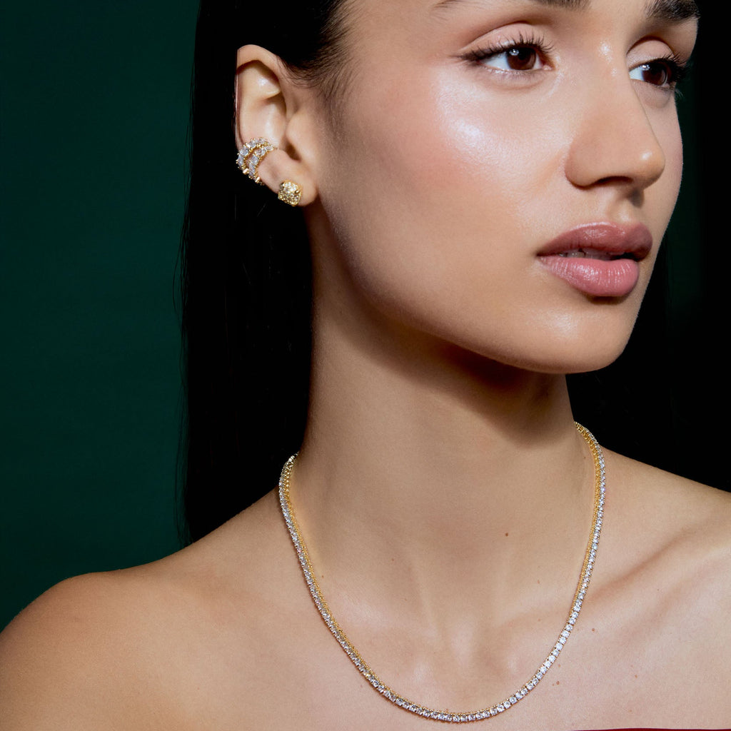 This Tennis Dainty Necklace embodies refined minimalism with its delicate strand of brilliantly set gemstones.