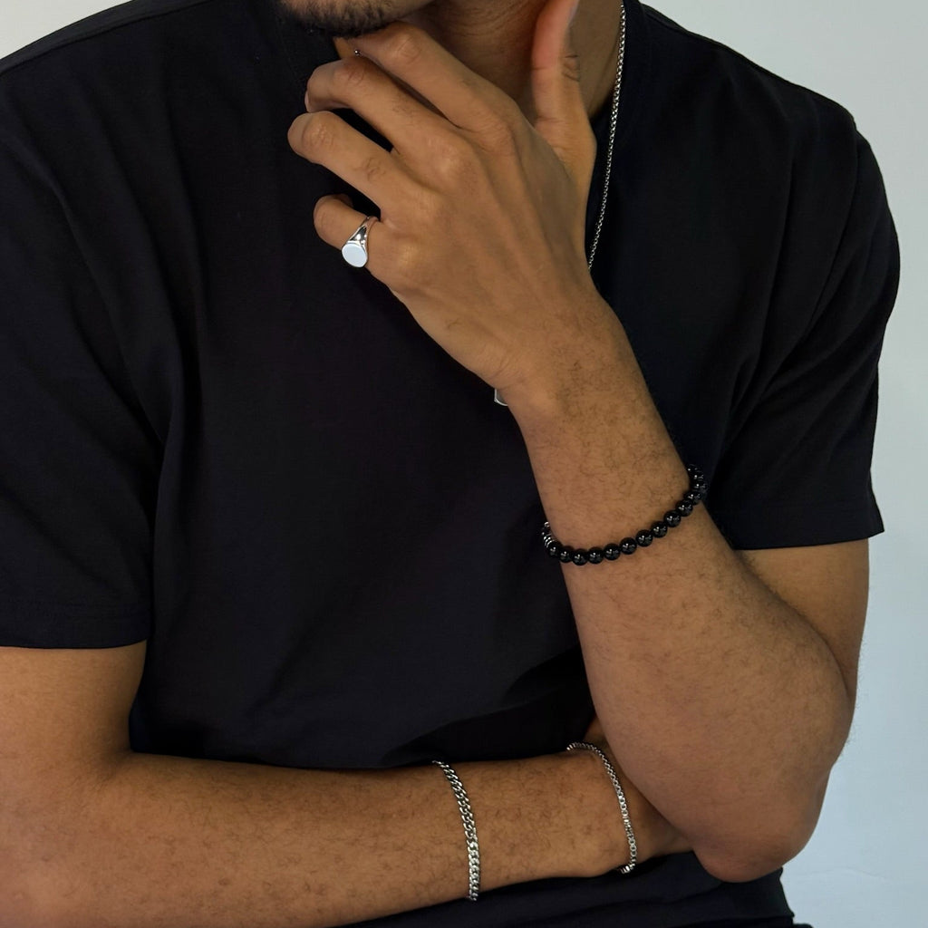 Elevate your everyday style with this Men Black Agate Gemstone Beads Bracelet. Featuring smooth, polished gemstone beads, it delivers timeless sophistication in a compact form.