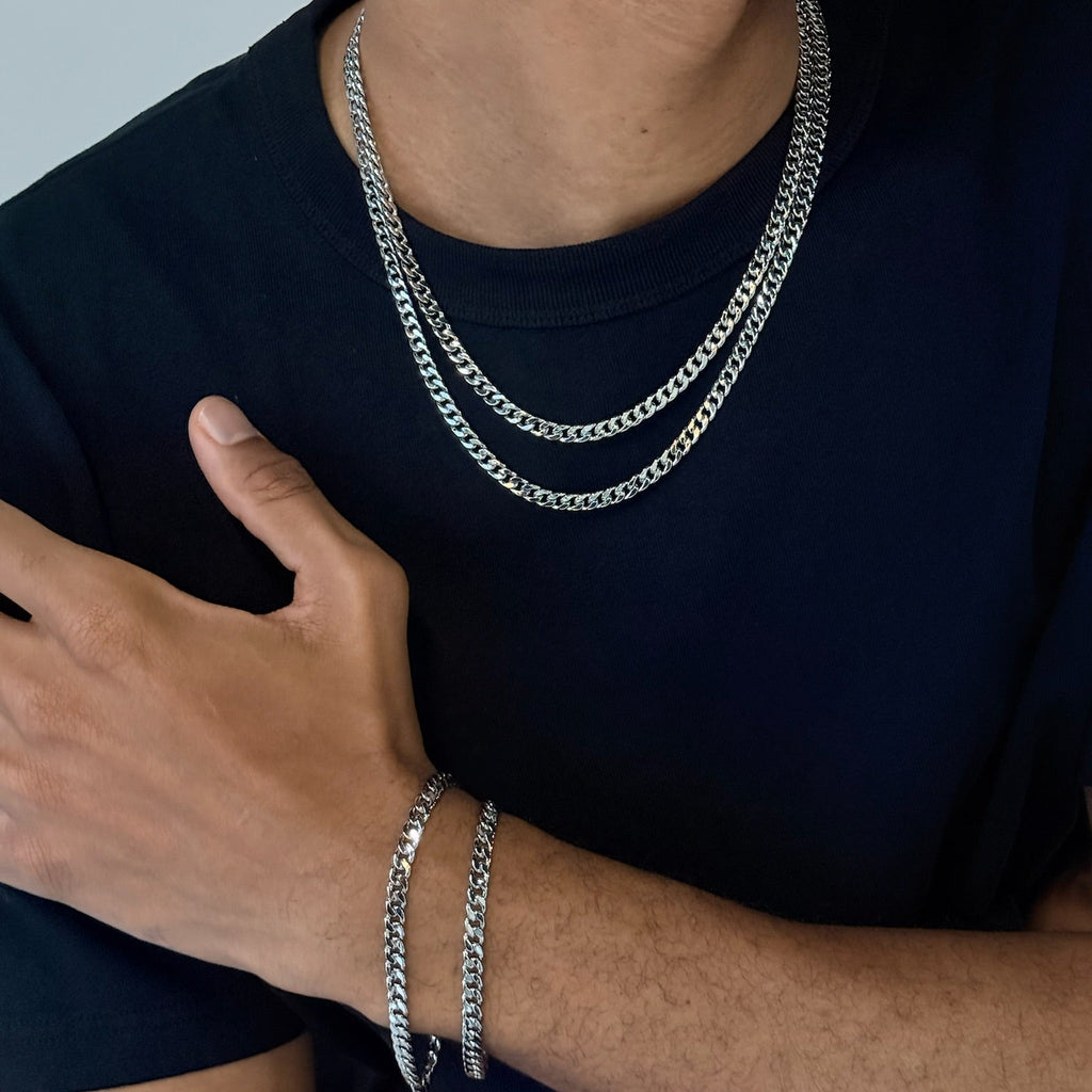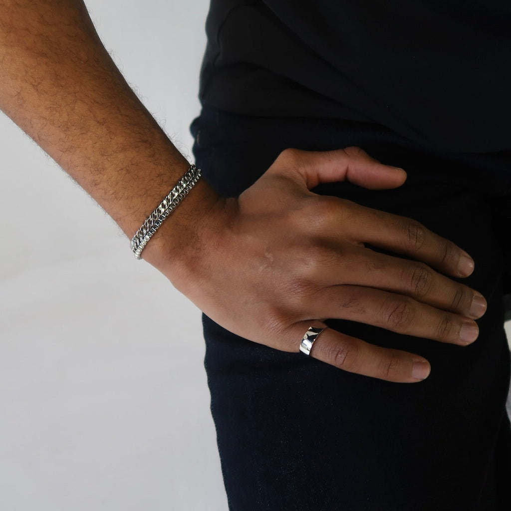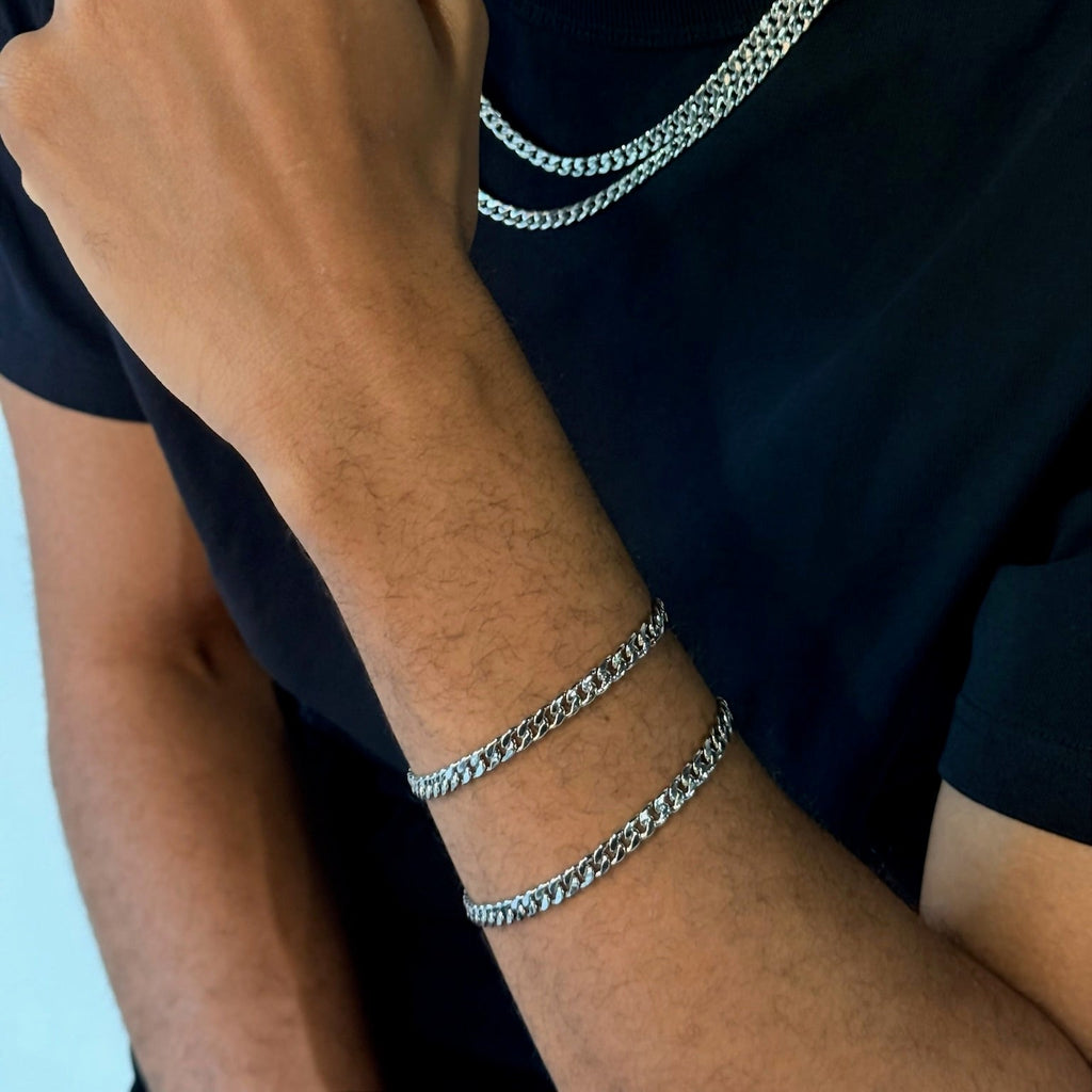 Bold and understated, this Men Curb Chain Bracelet embodies modern sophistication. The interlocking links offer substantial weight and presence while maintaining a clean aesthetic.