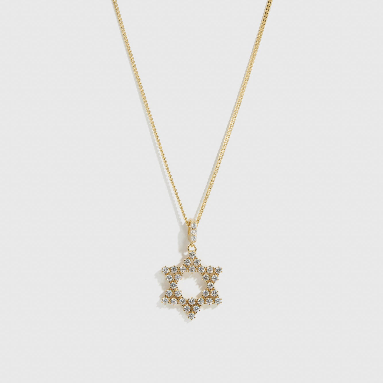 This refined Star of David pendant embodies timeless elegance and spiritual significance. Meticulously crafted with sophisticated design, it serves as a meaningful expression of faith and personal style, perfect for any occasion.