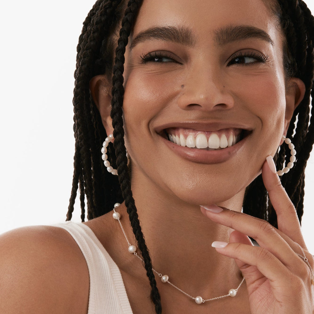 Each hoop is adorned with genuine freshwater pearls, adding a radiant glow to your everyday style.