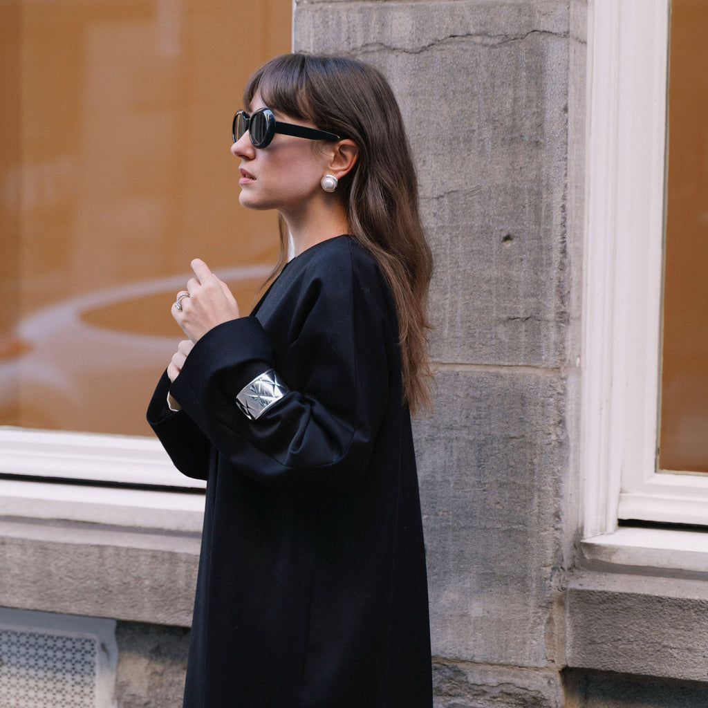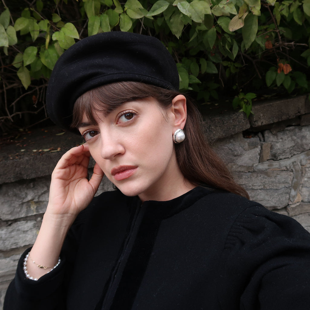 A modern take on retro trend, featuring a glass pearl and a quilted outline.