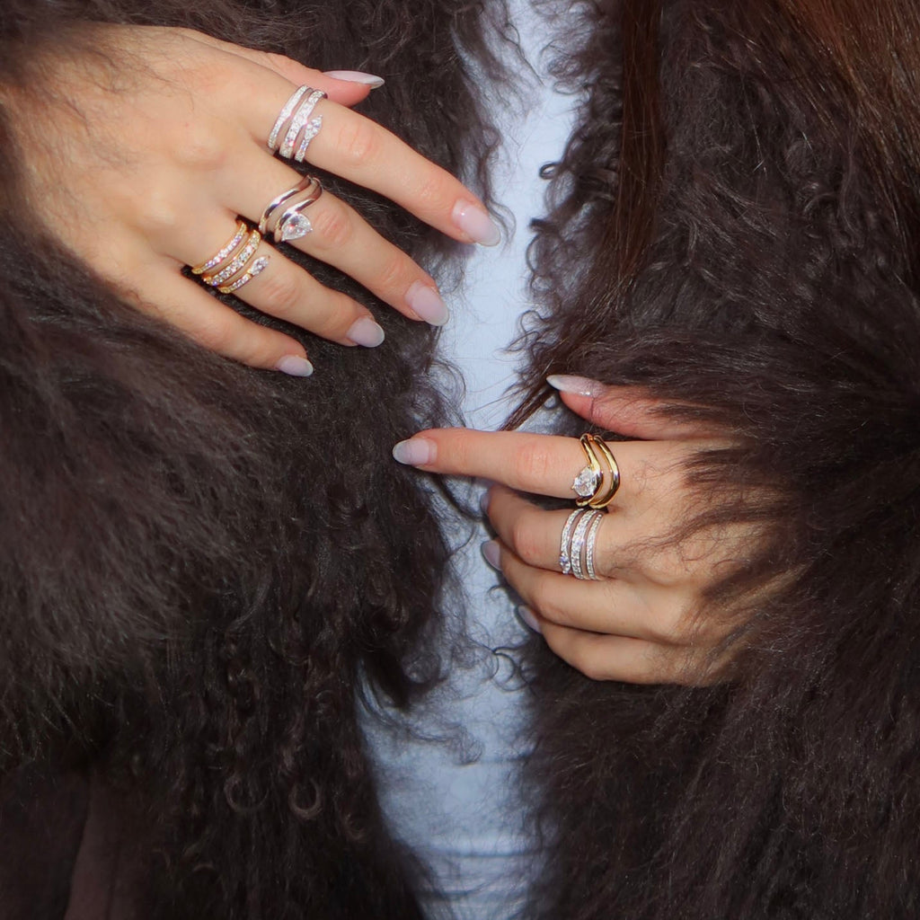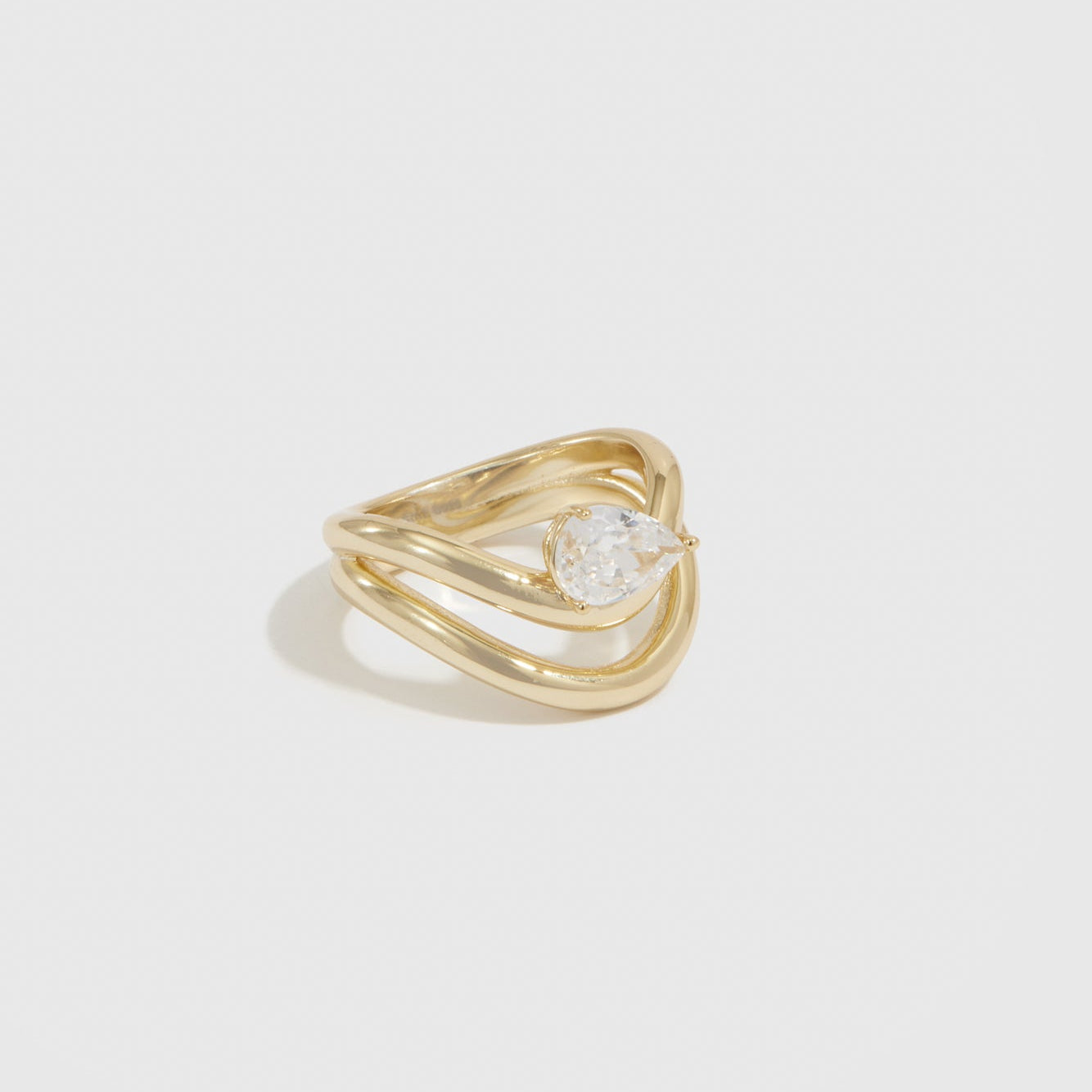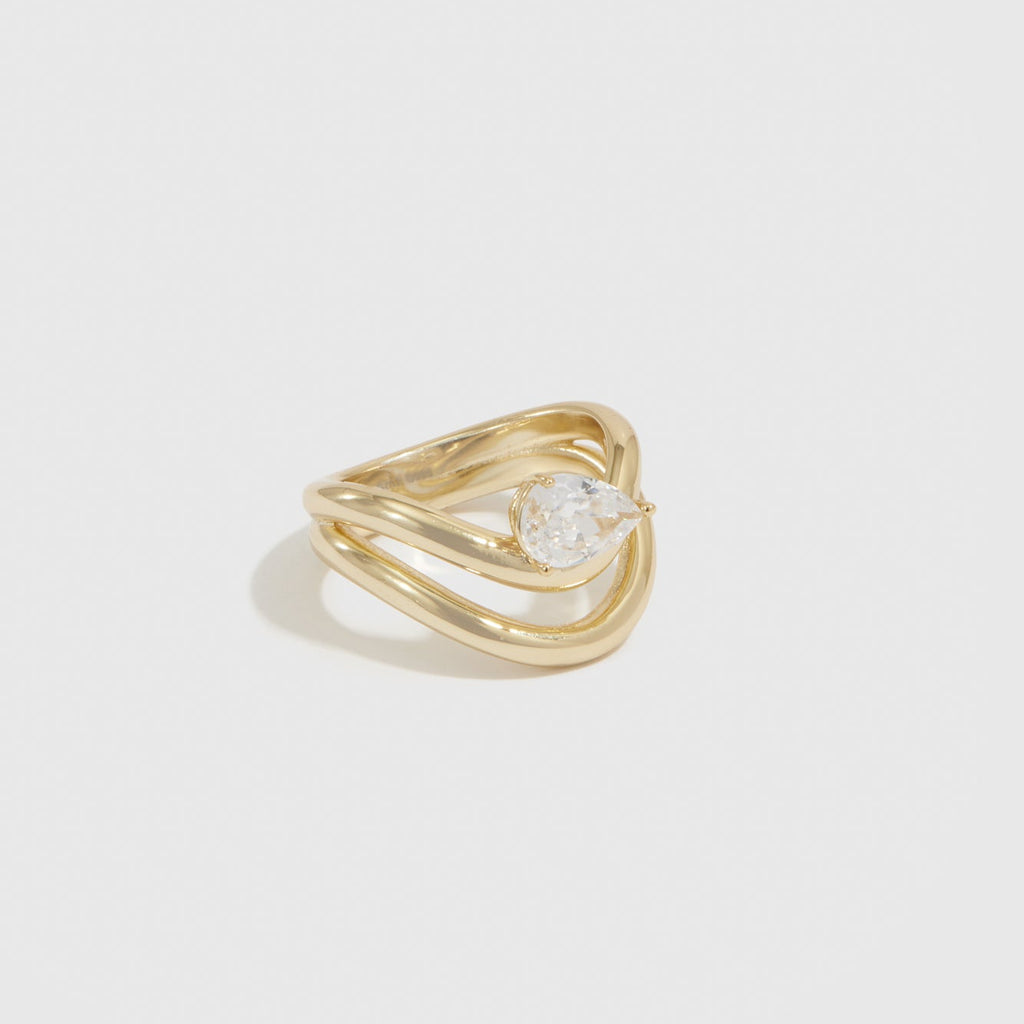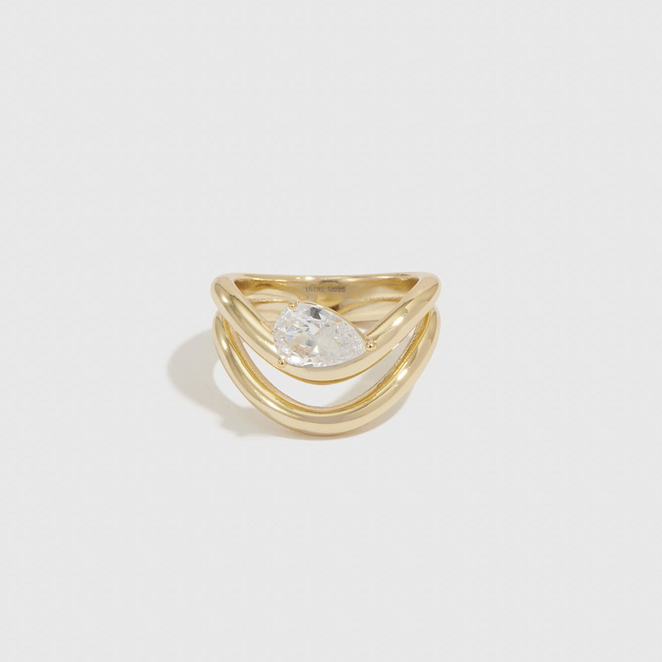 Designed in collaboration with Canadian talent Zarayna Ferguson, this unique ring features a teardrop-cut stone that floats above the two bands.