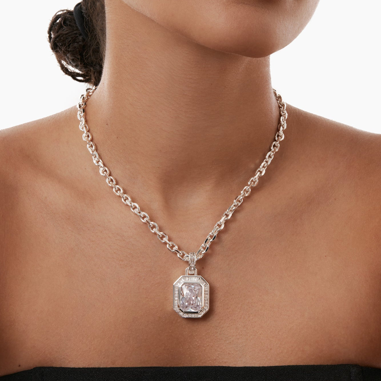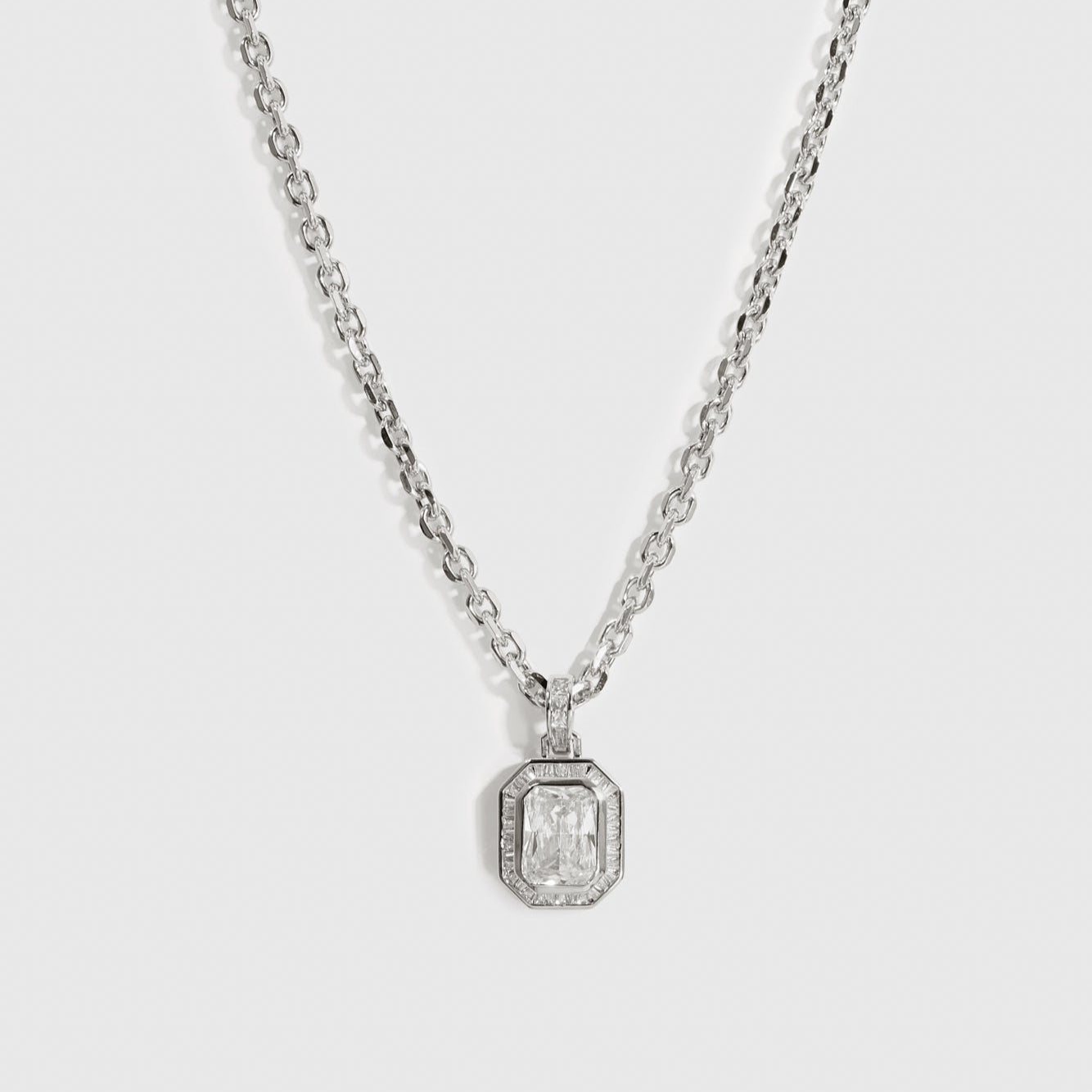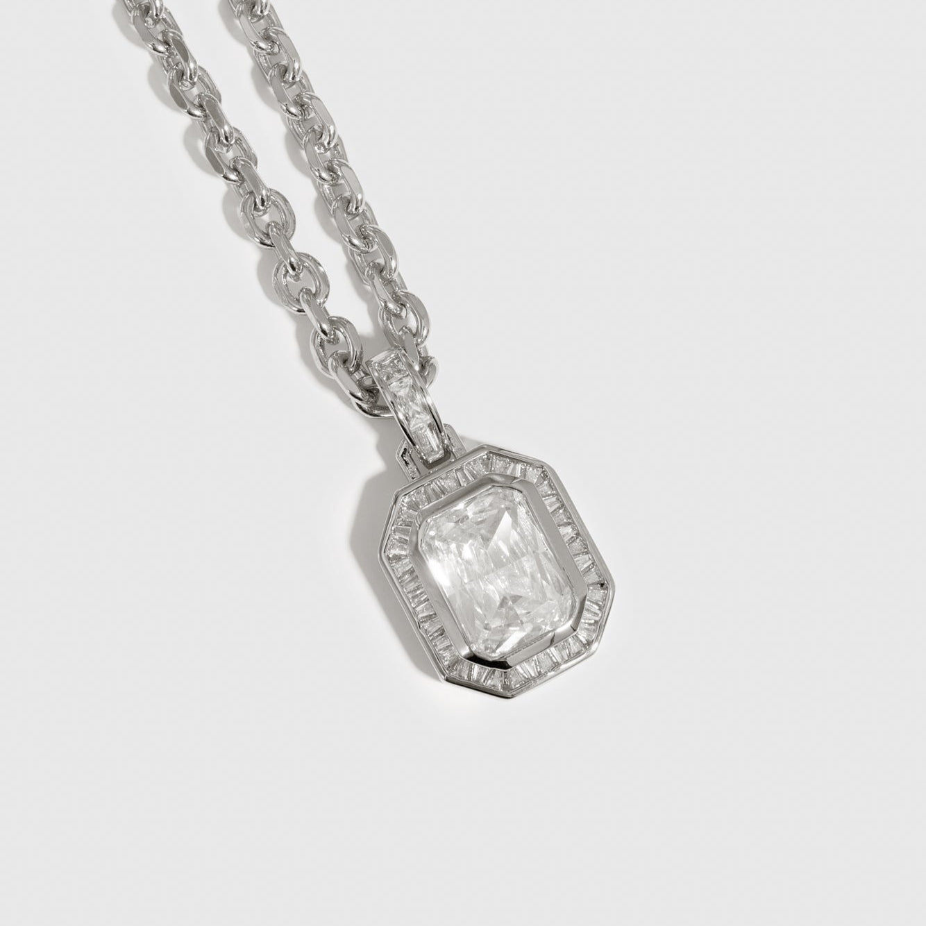 The Baguette Pavé Pendant features precisely set baguette stones that deliver a refined and sophisticated sparkle.