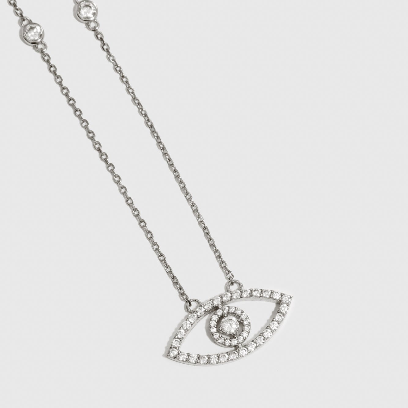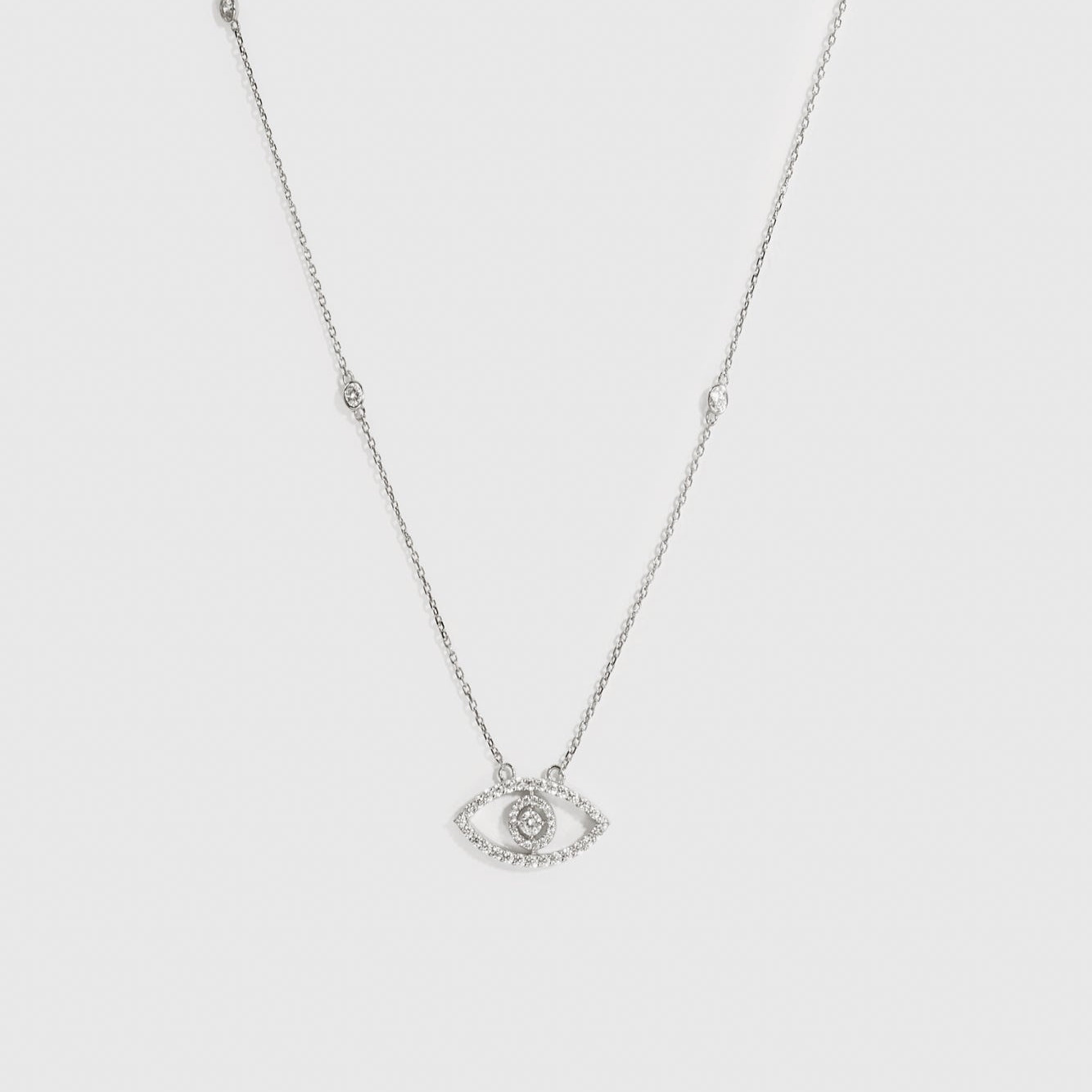 The Evil Eye Pavé Necklace combines elegant pavé craftsmanship with a powerful symbol of protection. Its refined design adds a subtle sparkle, perfect for enhancing any look with sophistication. Embrace timeless style and meaningful symbolism in one exquisite piece.