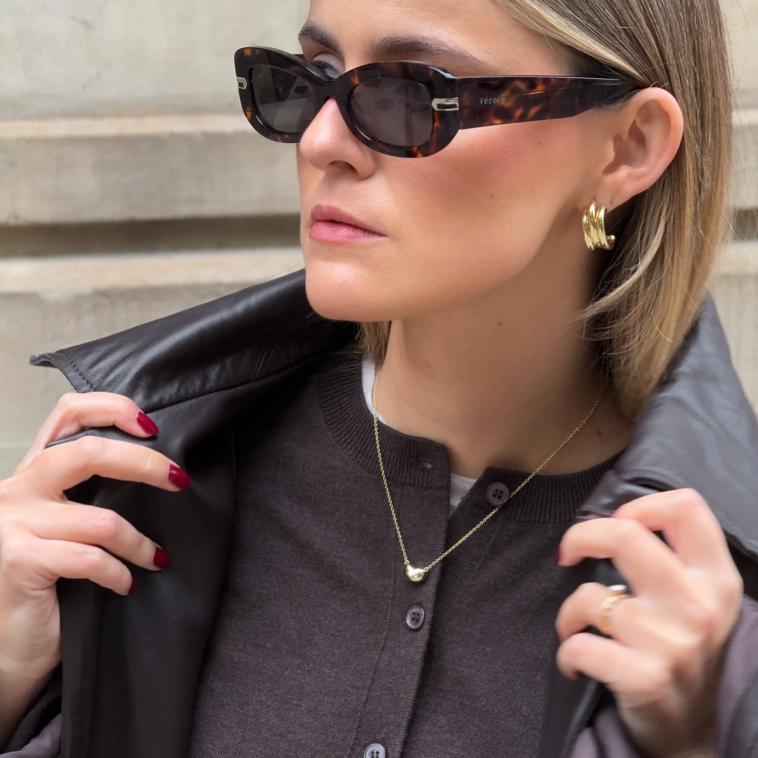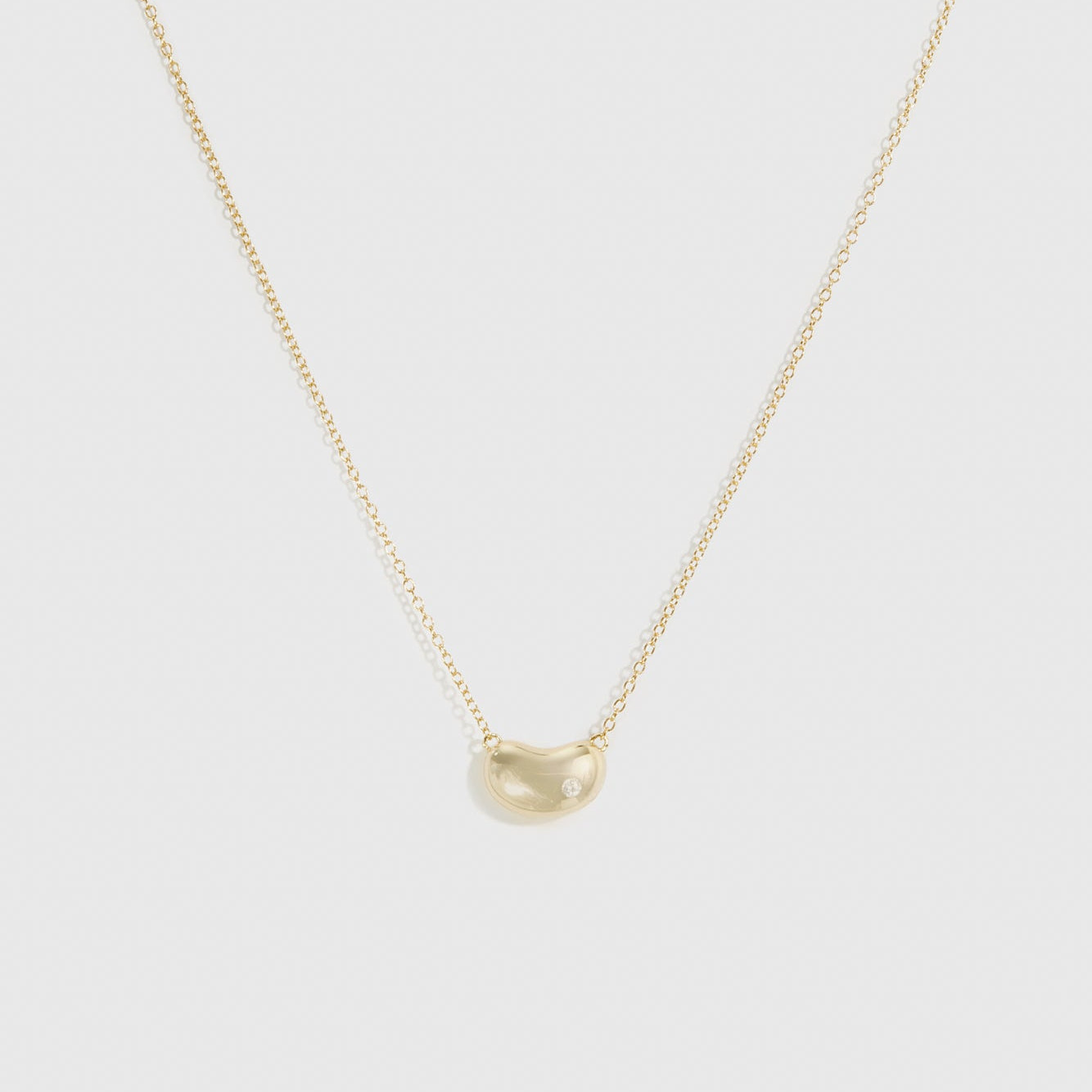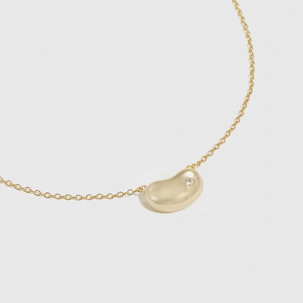 Designed in collaboration with Spanish talent Sara Yaben, this delicate and unique pendant necklace features a sculptural bean set with a sparkling, pure white stone.