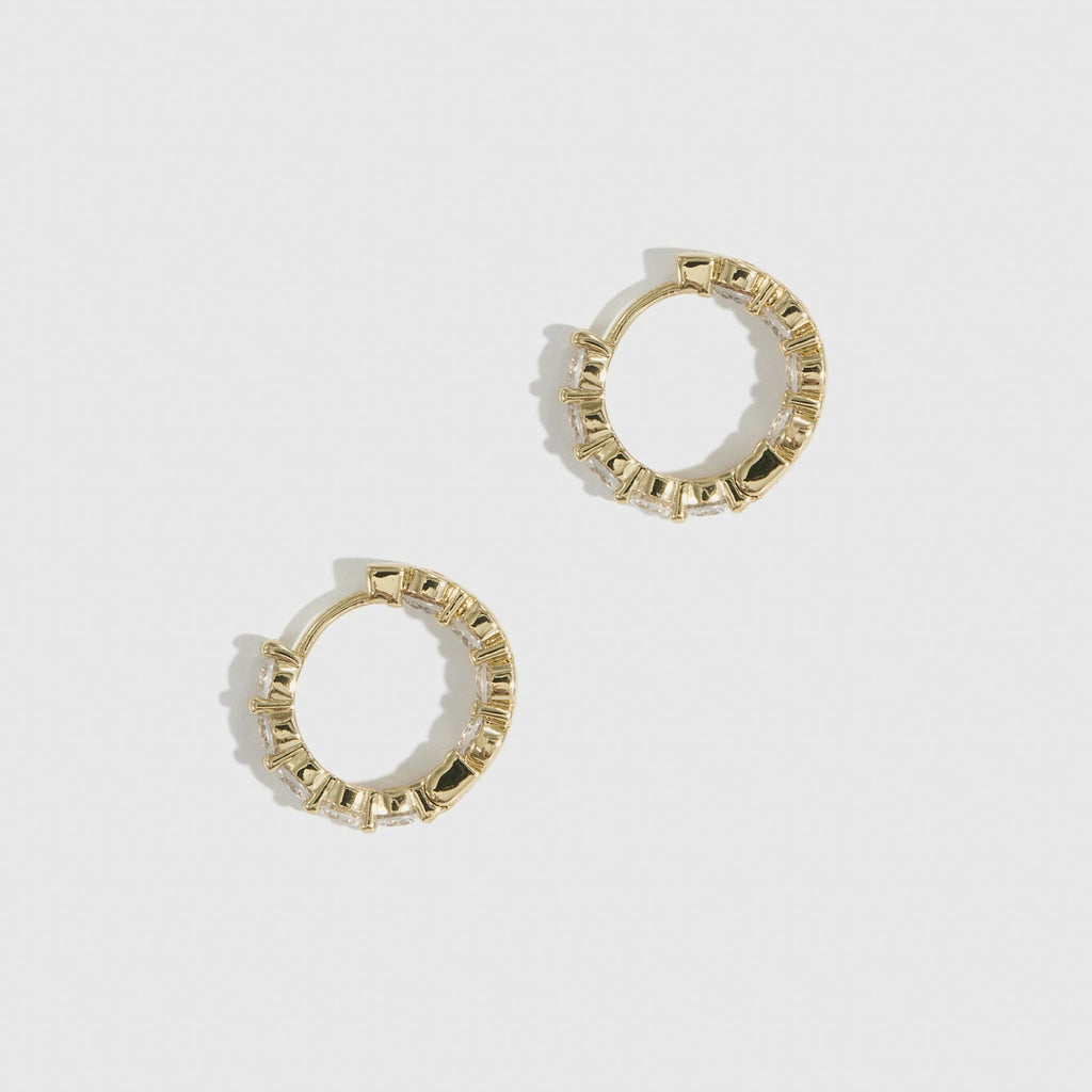 Inside-Out Pavé Huggies showcase expertly set cubic zirconia stones that shimmer elegantly from every angle.
