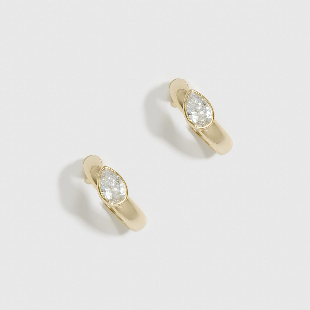 Experience the allure of these Teardrop-Cut Solitaire Hoops, where architectural elegance meets timeless beauty.