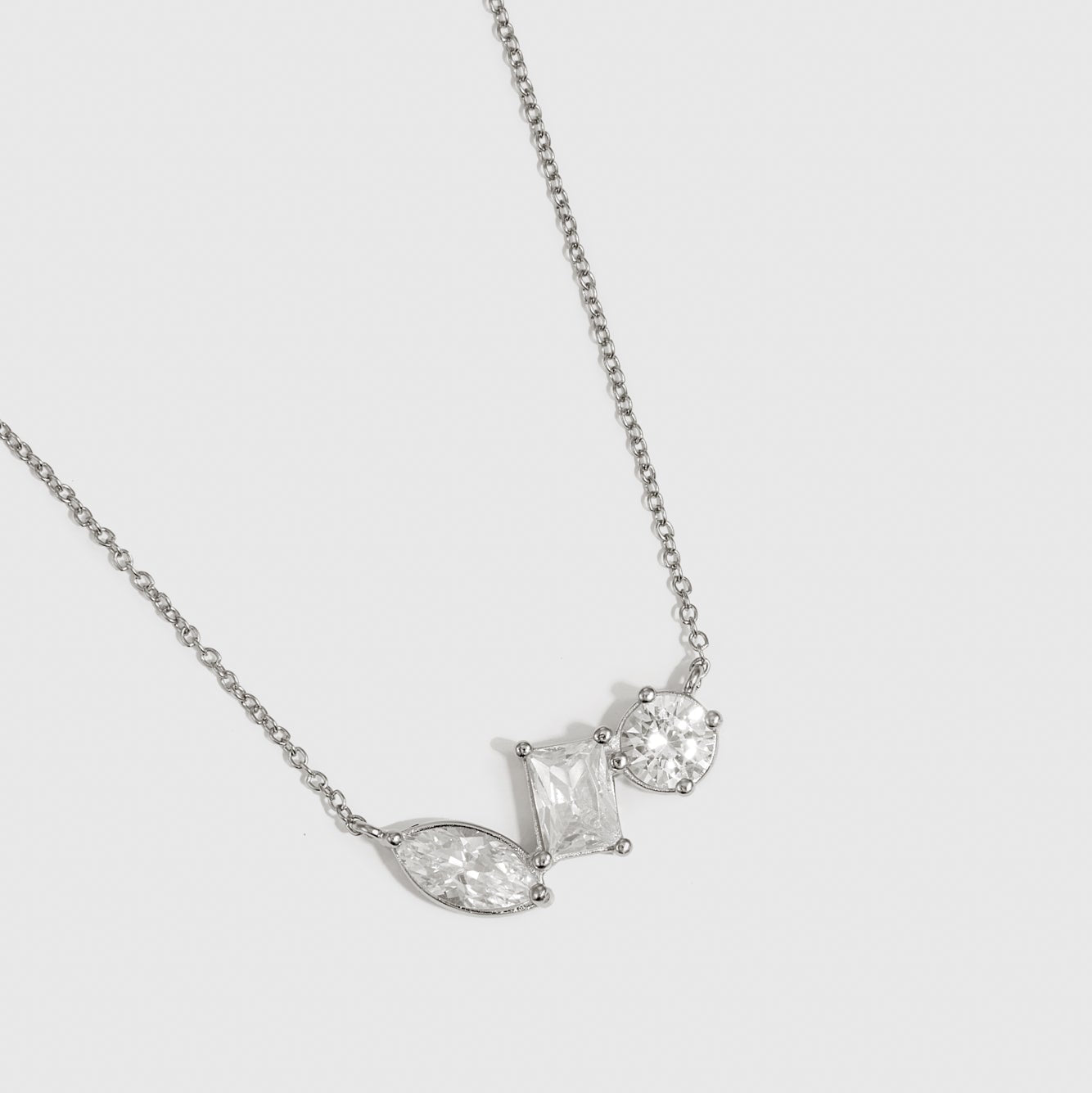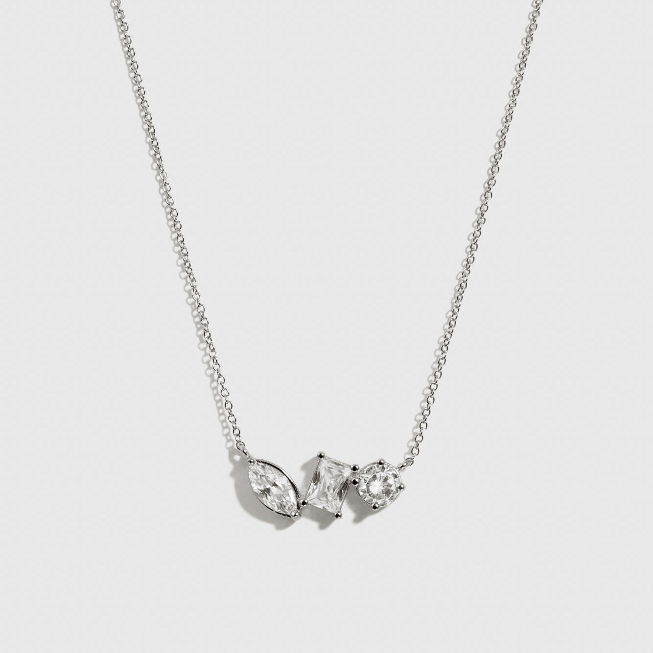Featuring three delicately cut geometric elements suspended along a graceful chain, this piece strikes the perfect balance between minimalist design and subtle sophistication.